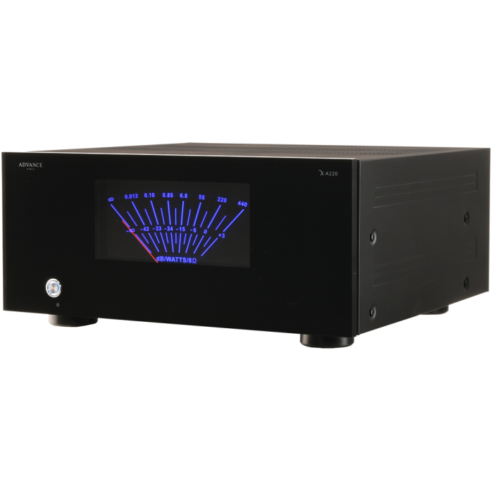 Pour répondre à l'attente des mélomanes les plus exigeants qui portent une attention particulière au résultat final de leur système audio et qui consacrent une part importante de leurs loisirs à l'écoute de la musique, nous avons créé l'amplificateur de puissance monophonique X-A220.Tant par ses performances musicales, que par sa présentation sobre et luxueuse, l'amplificateur X-A220 impose immédiatement le respect.Un amplificateur monophonique représente la solution idéale pour améliorer les performances globales d'une chaîne Haute-Fidélité. En effet, ce principe interdit toute interaction des circuits d'alimentation ainsi que des étages amplificateurs entre le canal gauche et le canal droit.L’alimentation de forte puissance associée au triple étage de sortie pourvu des fameux transistors « très haut courant » (NJW0281G - NJW0302G) du MAA 1000, ce qui permet à l'amplificateur X-A220 de délivrer une puissance de 220 Watts RMS sur 8 Ohms. Associé à son mode de fonctionnement « Hi Bias » l'amplificateur X-A220 alimentera facilement toutes les enceintes acoustiques du marché.Le X-A220 délivre une puissance de 220 W par canal en classe AB, un interrupteur situé à l'arrière de l'appareil permet au X-A220 de délivrer les premiers Watts en classe A. Au delà de cette puissance, la commutation en classe AB s’effectue automatiquement.