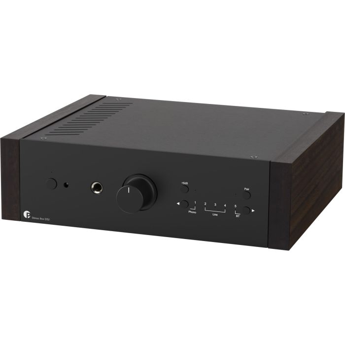 Stereo Box DS2 :La Stereo Box DS2 est le point de vue de Pro-Ject sur l'amplificateur stéréo intégré classique. L'accent est mis sur une qualité de son exceptionnelle, sans entrave, qui n'est pas freinée par un ensemble de fonctions trop restreint, où le bon son cède la place à de plus en plus de fonctions dont de nombreux clients n'auront peut-être jamais besoin.Le Stereo Box DS2 offre une excellente fonctionnalité sans en faire trop. La section préampli comprend un préampli phono de haute qualité, permettant de connecter des platines avec des cartouches MM ou des cellules MC plus exigeantes. Trois entrées de ligne RCA offrent suffisamment de flexibilité pour ajouter des lecteurs CD, des DAC et des dispositifs de diffusion en continu à votre système. L'entrée Bluetooth est idéale pour brancher rapidement votre téléphone sur vos enceintes et égayer votre salon avec une musique de fond chaleureuse.La véritable vedette est la section d'amplification de puissance. Le principe de conception double mono est capable de piloter les meilleures enceintes et de leur donner vie grâce à des transitoires puissants et à une scène sonore riche, large et dynamique. Les sorties RCA variables et fixes vous permettent de connecter des enceintes actives ou un caisson de basse. La sortie casque de 6,3 mm sur le panneau avant est pilotée par son propre étage d'amplification dédié et dispose d'une grande marge de manœuvre pour piloter les meilleurs casques d'écoute. Aucun détail n'a été négligé lors de la conception du circuit électrique et de cette façon, le Stereo Box DS2, relativement petit et compact, peut rivaliser avec des amplis intégrés beaucoup plus gros et plus lourds qui coûtent beaucoup plus cher !Le CD Box DS2 est un excellent complément au Stereo Box DS2. Avec ce lecteur de CD et de DAC, vous pouvez ajouter toute la connectivité numérique dont vous avez besoin et compléter votre expérience des vinyles haut de gamme avec des sources numériques modernes au son exceptionnel. D'une valeur inégalée, un ensemble stéréo puissant qui couvre l'ensemble des domaines analogique et numérique à un encombrement réduit qui sait ce qui compte le plus : une expérience musicale vraiment passionnante ! Le contrôle par télécommande IR ou par application fait de l'utilisation un jeu d'enfant. Le boîtier en sandwich aluminium/métal est esthétique et protège efficacement contre les interférences. Le Stereo Box DS2 est disponible en argent ou en noir, avec ou sans panneaux latéraux en bois de noyer ou d'eucalyptus.
