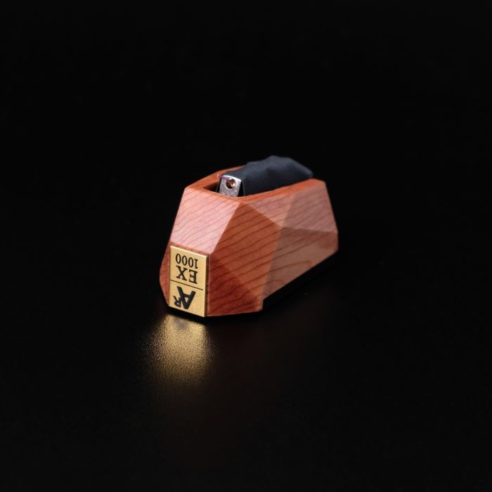 Les cellules phono de la série EX d'Analog Relax ont pour but d'obtenir une tonalité organique et un son très fin en utilisant des matériaux naturels.Le modèle phare de l'EX1000 utilise un cèdre "Yakusugi" rare, vieux de plus de 2000 ans, dont le bois massif a été rasé pour le boîtier. Le "Yakusugi" est un cèdre qui ne pousse naturellement que sur le site du patrimoine mondial de Yakushima, situé dans le sud du Japon, et dont l'arbre a plus de 1000 ans. "Yakushima", qui est formé par des mouvements de la croûte terrestre, a peu de sol, et le cèdre pousse sur la mousse collée au granit. Cependant, en raison du mauvais environnement climatique de Yakushima, où les nutriments sont faibles, les précipitations annuelles atteignent 10 000 mm et il neige au sommet de la montagne, le cèdre ne croît que d'environ 1 mm par an, de sorte qu'il présente de fins anneaux annuels et devient un bois très encombré. Parmi les individus qui ont évolué de façon unique pour s'adapter à un tel environnement, seuls les individus âgés de plus de 1000 ans sont appelés "Yakusugi". Actuellement, il est interdit d'abattre ou de sortir les "Yakusugi" de l'île, et seuls les stocks restants sur le marché peuvent être transformés. Parmi ceux-ci, l'EX1000 utilise du bois d'arbre de plus de 2000 ans soigneusement sélectionné pour les logements.Les cernes annuels sont très fins, en plus de leur beauté, le grain du bois est obstrué de sorte que lorsqu'il est utilisé sur le boîtier de la cartouche, il est possible de reproduire un son très délicat et organique.Le cantilever utilise un "rubis" usiné qui est considéré comme le deuxième plus dur après le diamant en termes de résistance. Il transmet le mouvement du sillon du disque à l'unité de production d'énergie pour réaliser un son haute résolution.Le stylet est un "Super Curved Line Contact 2" développé sur mesure. Bien qu'il s'agisse essentiellement d'une forme à contact linéaire, seule la pointe de l'aiguille est découpée de manière à se rapprocher de la courbure de l'aiguille ronde, et la zone de contact avec le sillon du disque est légèrement augmentée pour faire ressortir le son persistant. Une autre caractéristique importante est qu'il est difficile de capter le "craquement" propre aux vieux disques, car la pointe de l'aiguille n'entre pas en contact avec la partie intérieure du sillon du disque.La tension de sortie est de 0,5mV à haut rendement.L'aimant est en néodyme, mais en le disposant en plusieurs exemplaires, il a la capacité de convertir rapidement en électricité les mouvements les plus petits.
