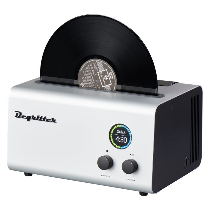 Degritter utilise un bain ultrasonique personnalisé avec un amplificateur ultrasonique de 300 W spécialement conçu pour le nettoyage des disques vinyles. Le bain de nettoyage comporte quatre transducteurs ultrasoniques (émetteurs), deux sur les deux faces couvrant l'ensemble du disque. Le Degritter est également équipé de la fonction Frequency Sweep, qui permet une meilleure répartition de l'énergie de cavitation et de la puissance. Degritter est la seule solution de nettoyage sur le marché fonctionnant à 120 kHz et disposant de la fonction Frequency Sweep.