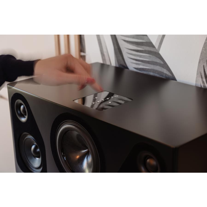 Le système d’amplification de type classe D dispose d’une puissance cumulée de 255 Watts (2 x 65 Watts pour le médium / aigu et 125 Watt pour le grave en mono) largement suffisante pour nourrir une pièce de taille raisonnable avec un niveau sonore réaliste.