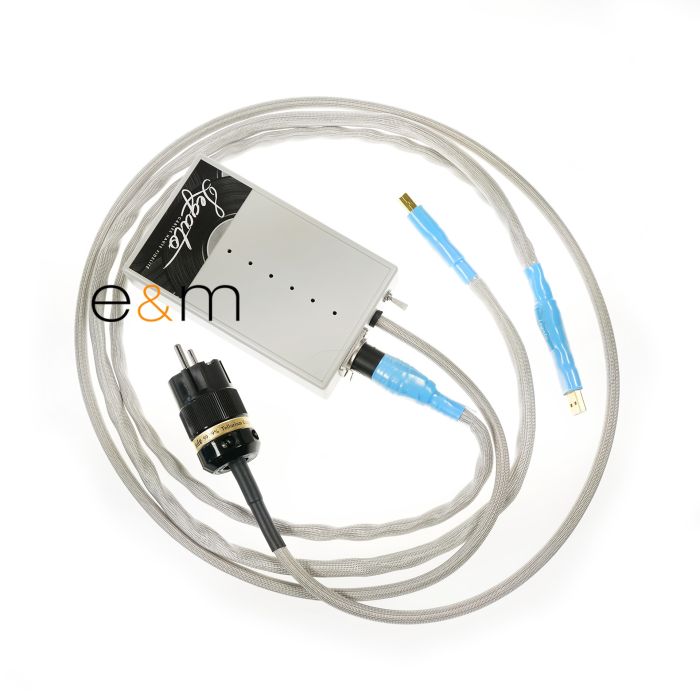 Comme toujours, le constructeur a longuement défini les matières, dimensions (sections), mises en oeuvre, tant aux mesures poussées qu'à l'écoute. Les conducteurs signaux musicaux et alimentaton sont bien séparées, avec des cables spécifiques, réunis dans une même gaine extérieure. Les liaisons numériques et d’alimentation ont été soigneusement séparées . Le câble numérique respecte l’impédance de 90 ohms de la norme USB. Le câble d’alimentation, très sophistiqué pour atténuer les perturbations de l’alimentation de la source, n’a pas moins de 2 mm2 de section pour avoir la même résolution sur tout le spectre sonore.