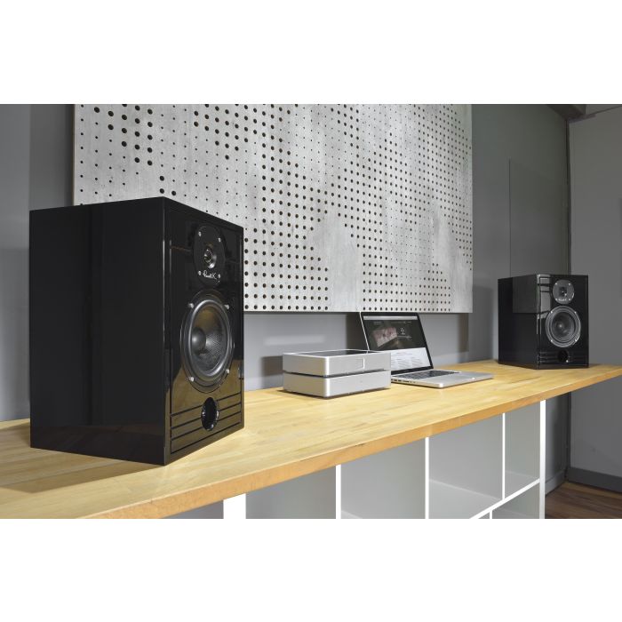 - Complément de haut-parleurs : tweeter à dôme souple de 25 mm, un haut-parleur de médiums-graves de 165 mm en papier dopé.